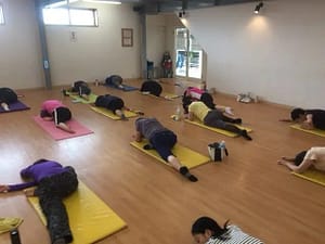 写真の瞬間はお尻のストレッチをしてますね ^^