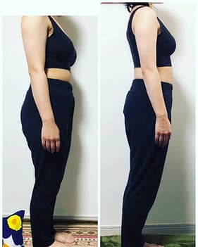 下半身はお尻を中心に全体的にスッキリ、お腹もだいぶ薄くなりました。姿勢も徐々に綺麗になってきています。