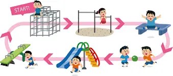 こんな感じで色んな遊具をどんどん使っていくだけでサーキットトレーニングになりますし、