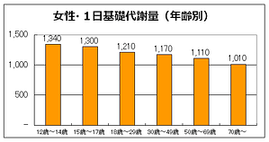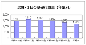 基礎代謝とは、何もしなくても(1日寝てるだけでも)消費できるカロリーのことです。ところが、年齢とともに基礎代謝は下がります。これはごく自然なことですが、これに抗うためにはやはり運動は不可欠です。グラフのように、1日あたり50キロカロリーしか減ってないからそれぐらい大丈夫と思うかもしれませんが、