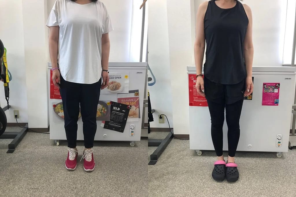 数値は体重で言うと、63kgから48kg、50代女性です。洋服のサイズはLからSになりました。