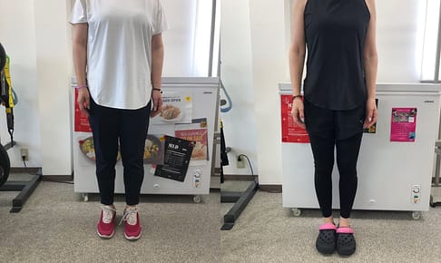 フィットネス40代女性。半年くらいでここまで変わったので立派です。約20kg減。 ちょっと写真撮影の位置を間違えたみたいで比較が正確ではない写真ですが、それでも13kg減ってます。 50代女性。横からの姿が全然違いますね。2…