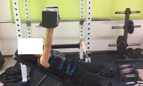 トレーニングはやはり大きい筋肉を使わないとね!! インクラインダンベルプレス。 胸の上半分を主に使うトレーニングです! (腕の後ろや肩の前も補助的に使います) ここから、がつんと!! 効いてる効いてるヽ(^o^)丿 この…